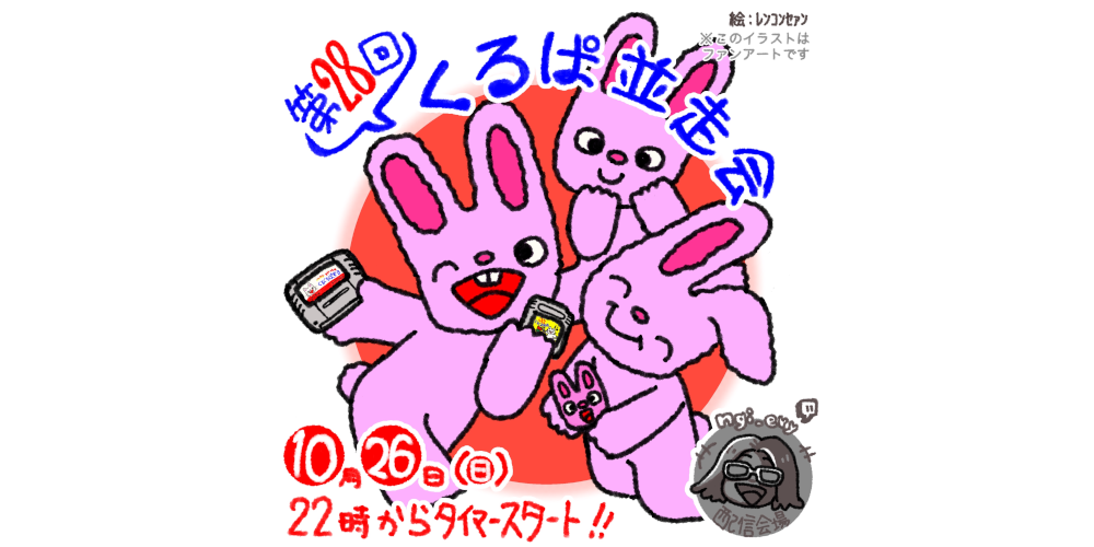 第28回くるぱ並走会は10/26(日)22:00からタイマースタート!